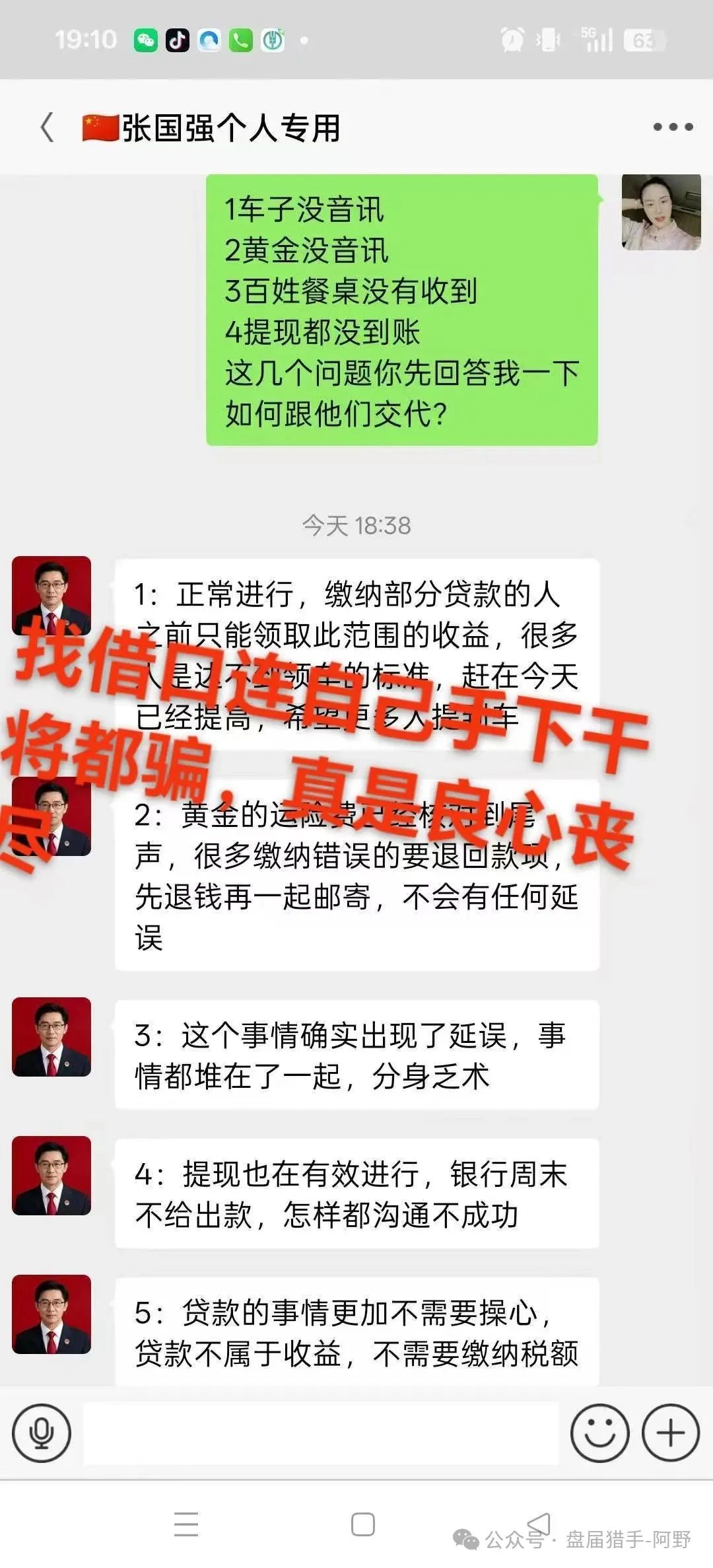 - 苏玉竹、张兵 等 “助理干事” 疯狂拉人,把骗局包装成 “国家工程”,说你不参与就是 “错过暴富机遇”;