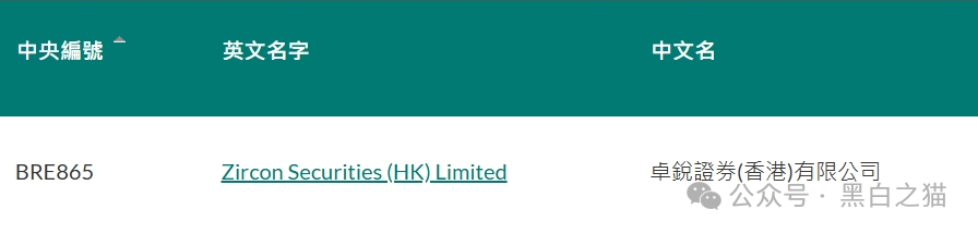 香港证监会认可的持牌法团(中央编号:BRE865),真实的对应单位为卓锐证券(香港)有限公司,官网上没有任何以上项目盘关联关系,有疑问者可以拨打国内客服免费电话咨询真假。