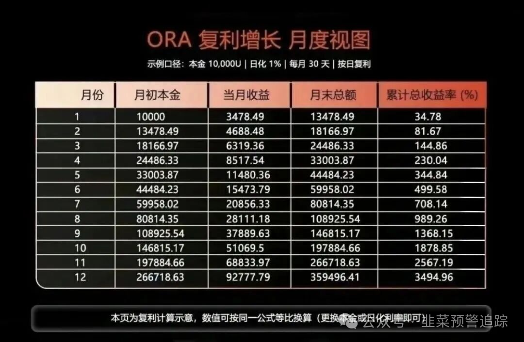 (欧拉) ORA协议资金盘!它和已近乎归零的“拉菲协议 LAF”一样,都以高收益承诺为诱饵,实行层级代理传销模式,虚假包装暗藏猫腻。ORA协议老鼠仓多、筹码集中,类似项目最终都崩盘跑路。所有稳赚不赔的高收益项目都是骗局,大家要保持警惕,坚决远离,切勿让辛苦钱打水漂。