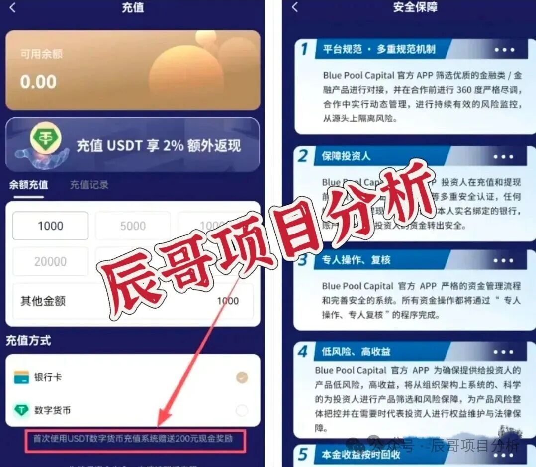 BluePool蓝池资本:冒充香港机构的U本位收割盘打着香港资管旗号,用USDT理财、日息0.5%-2%诱惑人,本质就是纯资金盘。没有真实业务,只靠新人填坑,现在已经进入高危期,随时关网跑路。