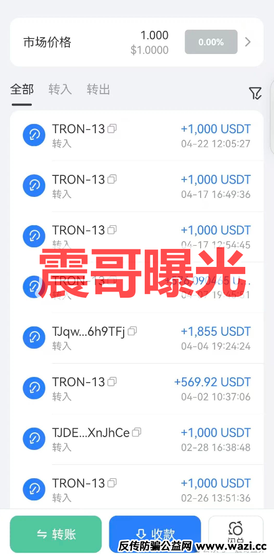 震哥顺便查了一下这个项目的充值地址,查了好多个,别的就不发出来了。明细看出这个项目参与会员比较少,熙熙攘攘的地址,两个月一共才充值两万U。项目方总共也没几个地址,而且明细看出来,这应该是团队长代充的。充值时间还间断,有时候几天才进一两个会员。