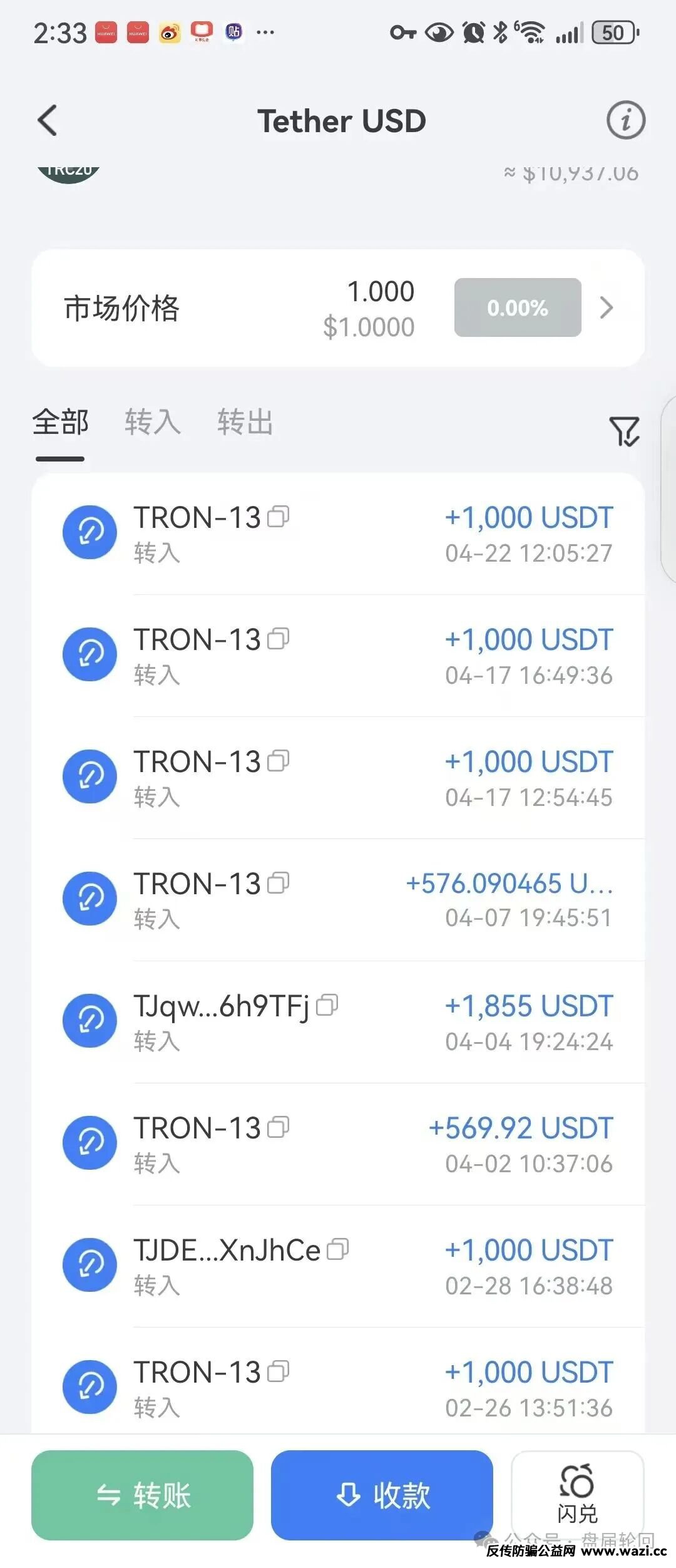 轮回同时也查了一下这个项目充值地址  轮回查了好多个  别的就不发出来了 但是明细看出这个项目 参与会员比较少 ,熙熙攘攘的地址 两个月一共才充值两万U  项目方总共也没几个地址,而且明细看出来 这个应该是团队长代充的 ,充值时间还间断  有时候几天才进一两个会员 。