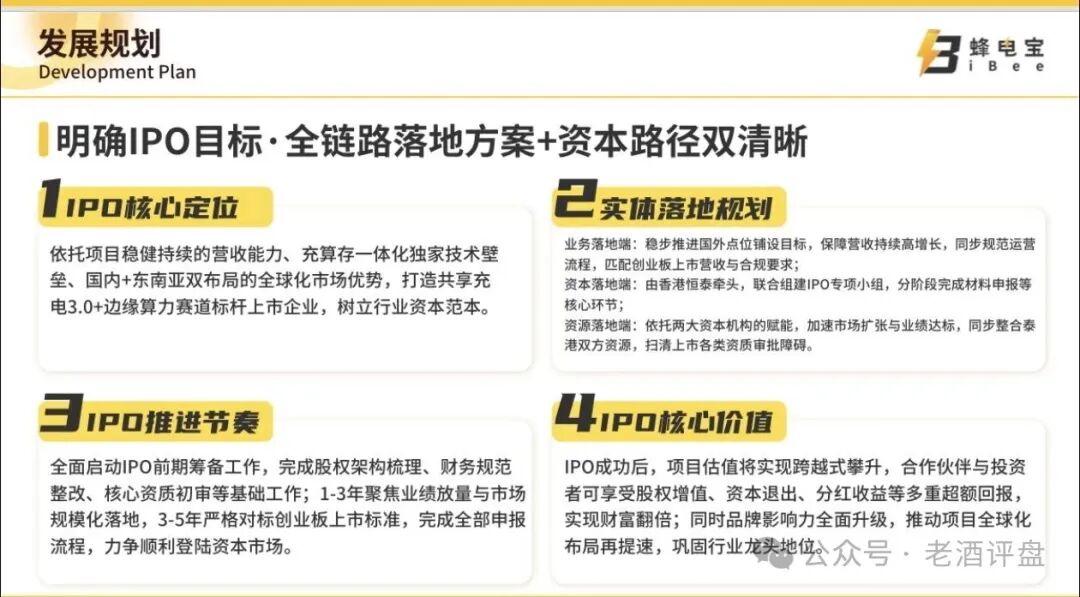 为了稳住投资者,蜂电宝还抛出了“IPO上市”的终极诱饵,宣称要在3-5年登陆创业板,打造共享充电+边缘算力赛道标杆上市企业,上市后可实现财富翻倍,让投资者享受股权增值、资本退出、分红收益等多重回报。但所谓的IPO推进节奏,不过是毫无落地依据的口头承诺,既无券商辅导公告,也无任何上市筹备的公开进展,甚至连项目的主体公司都存在信息模糊的问题。