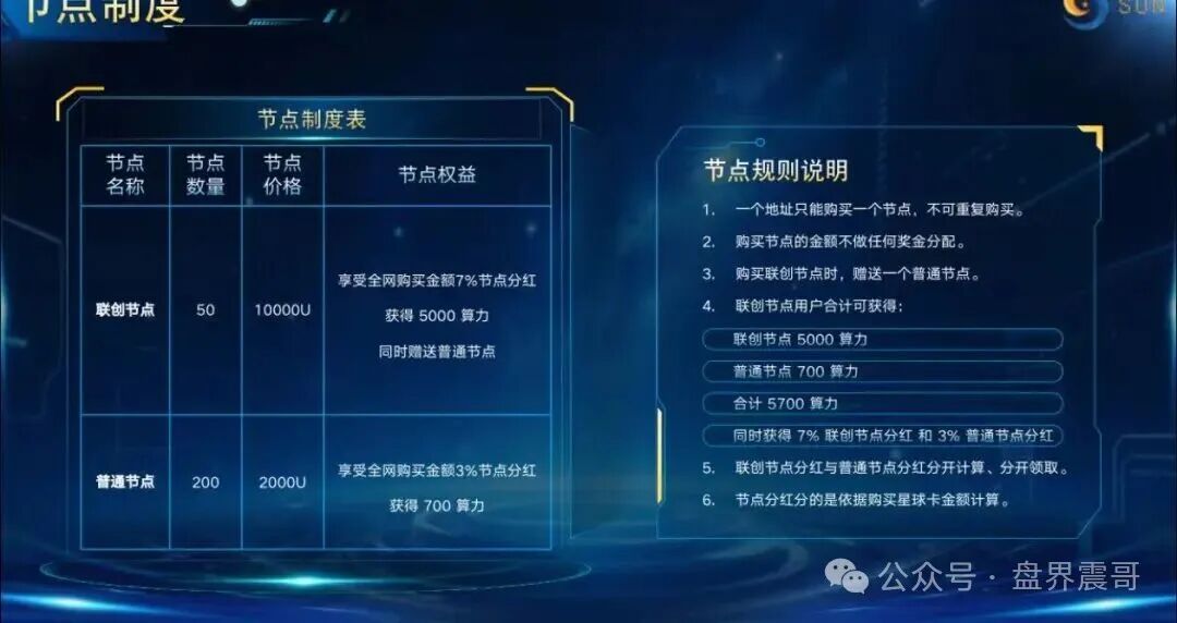 项目设置了从300U到15000U不等的“星球卡”,以及2000U、10000U的节点购买门槛,用户只有投入资金购买这些“卡”和节点,才能获得算力和收益资格。所谓的“算力挖矿”,不过是用新用户的入金,给老用户发放收益的幌子,没有任何真实的挖矿产出。