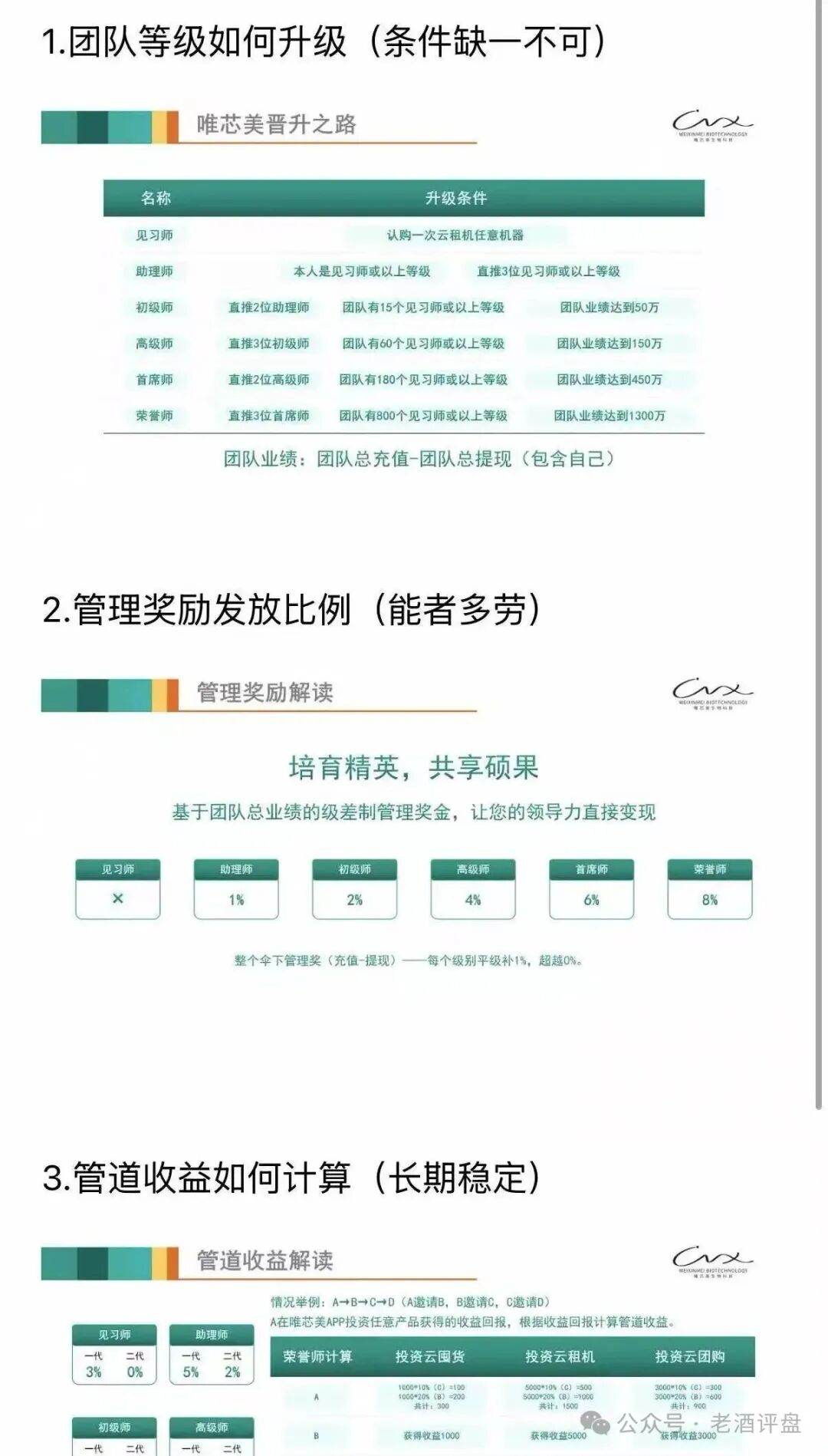 更危险的是,平台设计了一套层级分明的拉人头奖励机制。从见习师到荣誉师,只要不断拉新、发展团队,就能获得1%-8%的级差管理奖,还有管道收益、直推间推奖励。这种典型的金字塔式奖励,根本不是靠设备盈利,而是用新投资者的本金给老用户发收益,一旦后续资金跟不上,平台必然崩盘跑路。